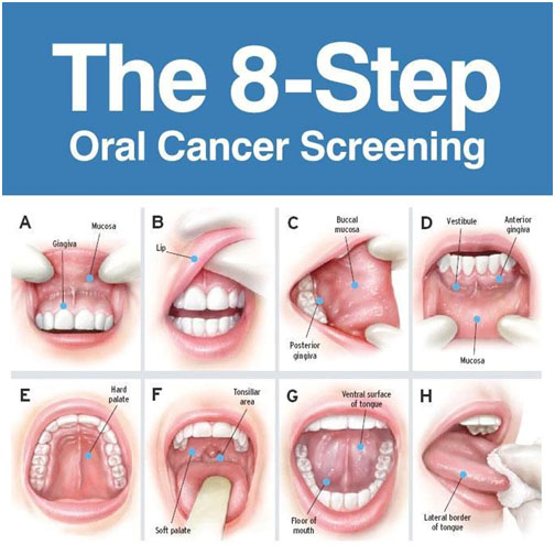 You can take an active role in detecting oral cancer early, should it occur, by doing the following: