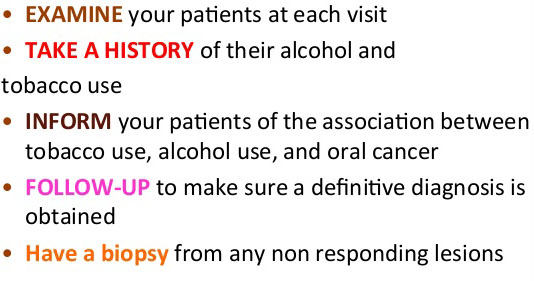 It is important to note that over 25% of all oral cancers occur in people who do not smoke and who only drink alcohol occasionally.
