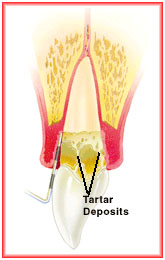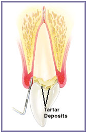 Scaling and root planing is a careful cleaning of the root surfaces to remove plaque and calculus [tartar] from deep periodontal pockets and to smooth the tooth root to remove bacterial toxins. Scaling and root planing is often followed by adjunctive therapy such as local delivery antimicrobials and host modulation, as needed on a case-by-case basis.